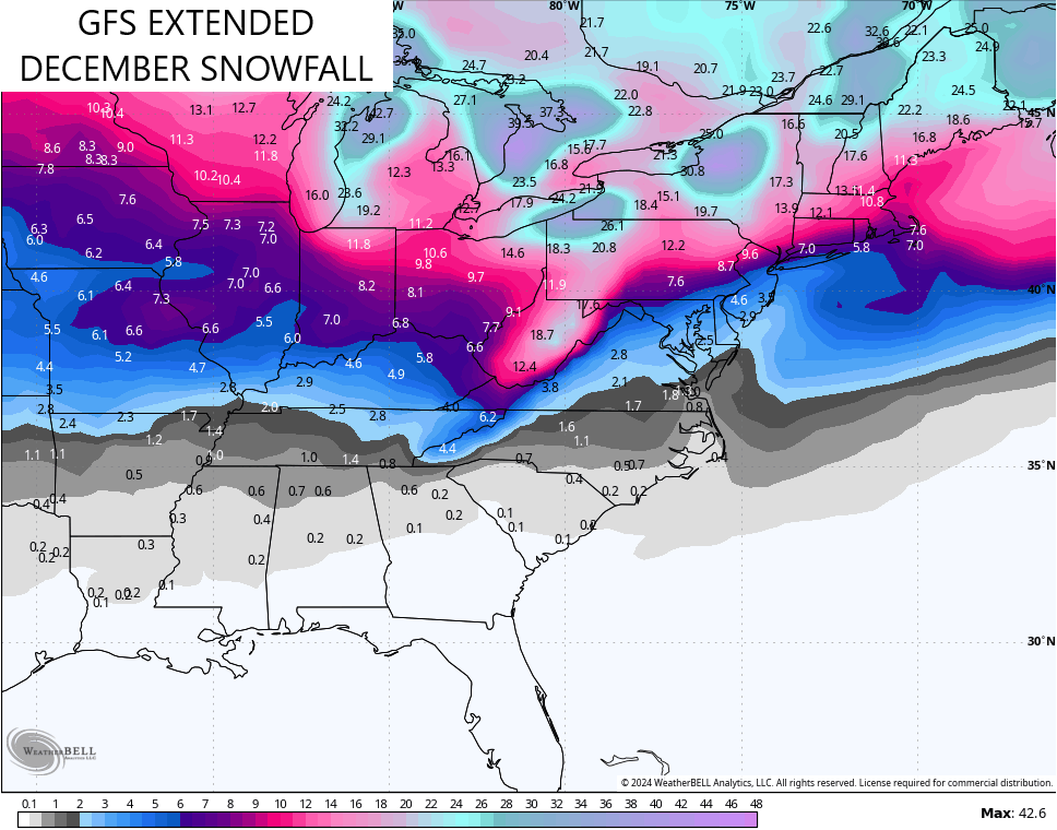 That doesn’t mean the month won’t have a few milder stretches, because it will, it just means those models have the entire month averaging colder than normal with above normal snowfall.