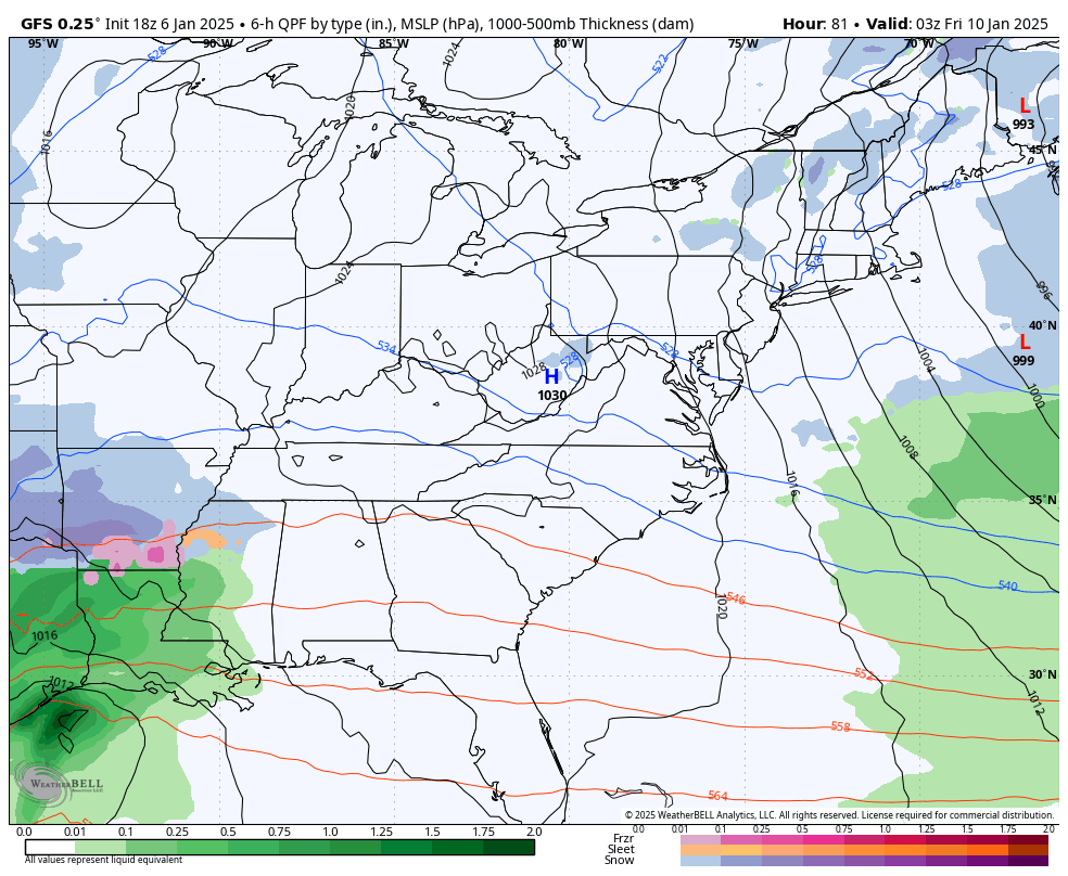 The Winter Storm THREAT comes at us Friday and Saturday as low pressure develops in Texas and rolls toward the northeast, potentially phasing with a system dropping in from the northwest. That’s what the GFS and Canadian Models have been suggesting for a while now and the GFS continues to show another healthy winter storm…
