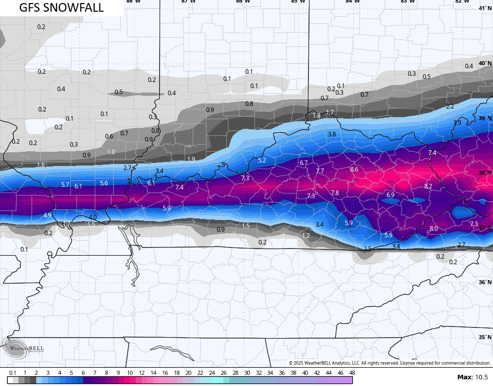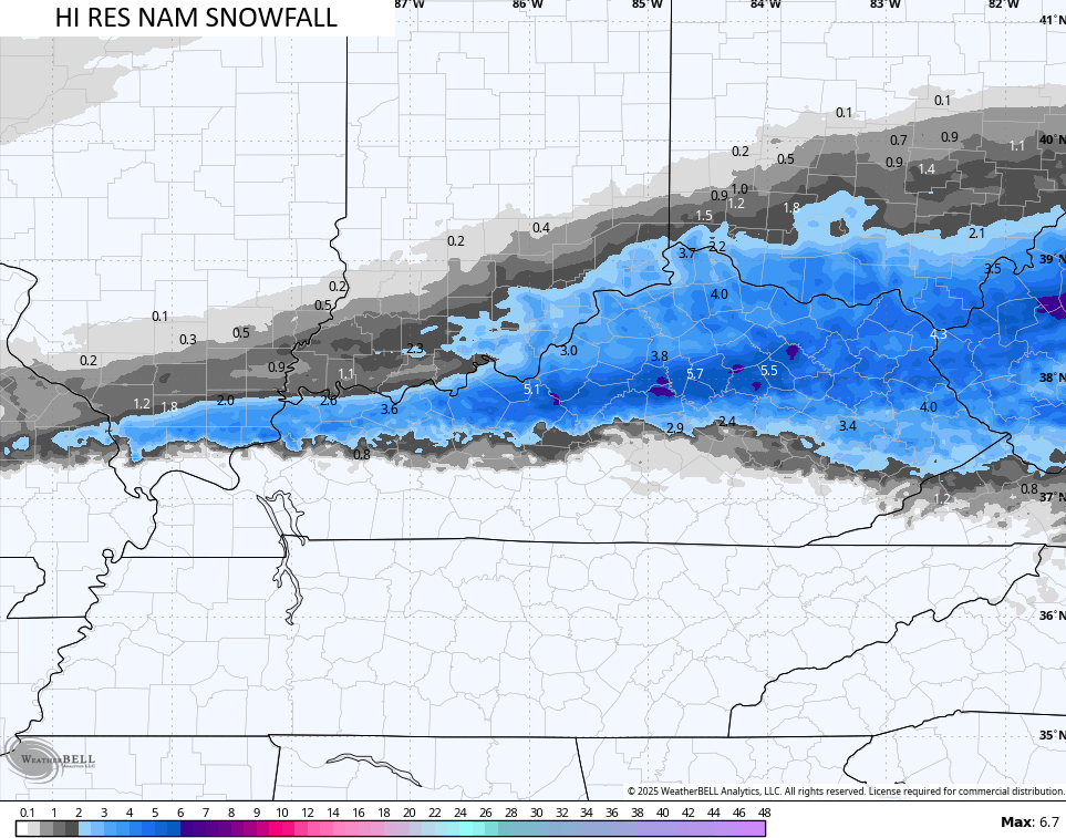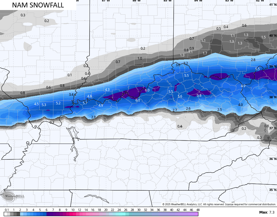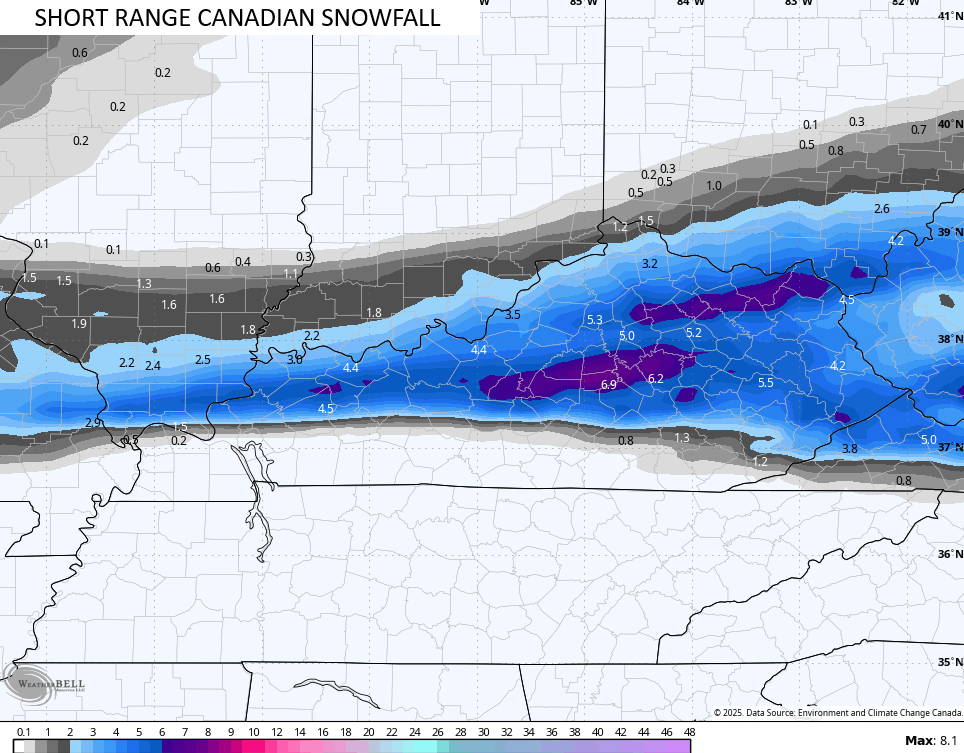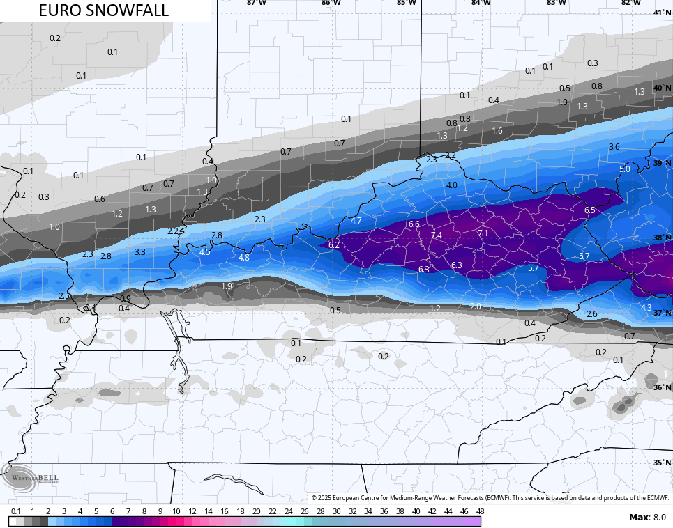 The 8″ potential with that would be the absolute highest possible with most areas falling well short of that.