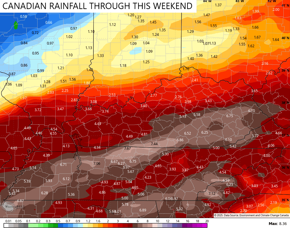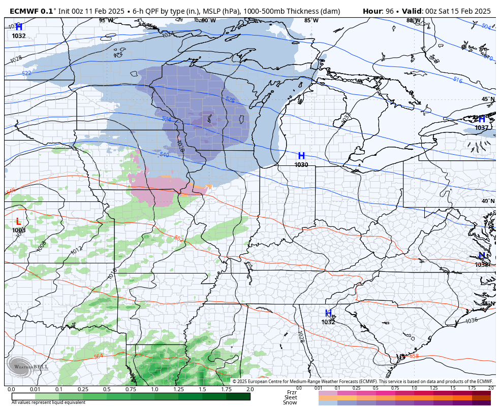 Nothing but rain here in Bowling Green, and plenty of it. Currently it is 35°F and my PWS has recorded 1.10 inches of rain since midnight. Rain continues to fall at a moderate rate of 0.15 inches per hour. Travel is sketchy on some local roadways that are prone to flooding, and we’re seeing a significant amount of ponding on both roads and yards, since the ground is saturated.