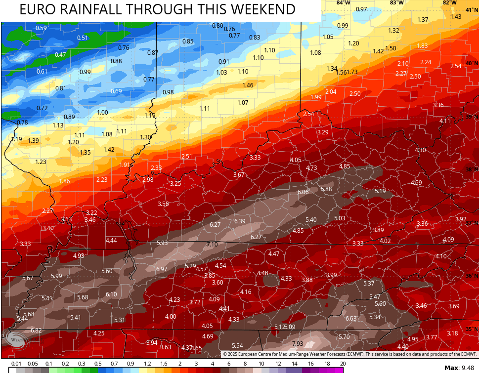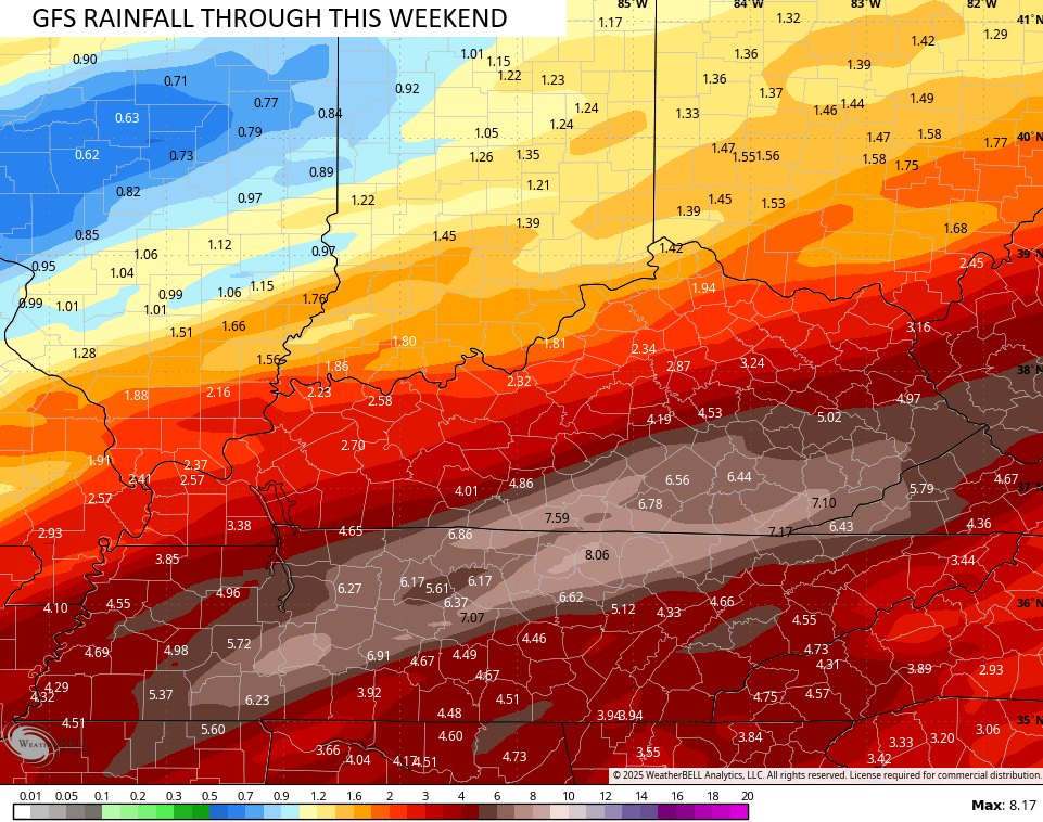 The total precipitation numbers from the GFS from today through Sunday are ugly…