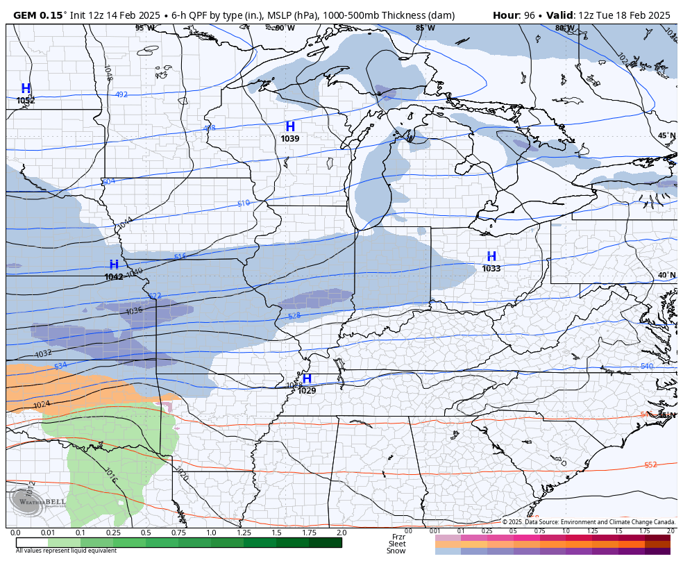 The EURO and Canadian Models see this same swath aimed a tad west…