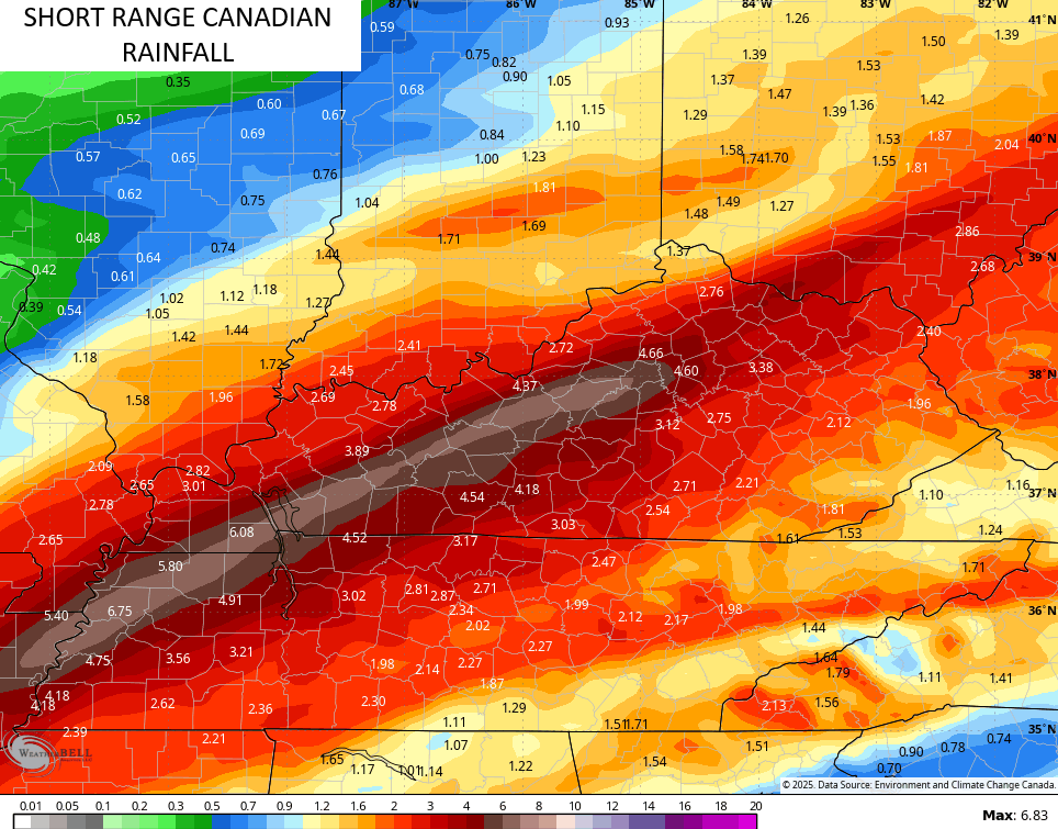 That High Risk is likely a bit too restrictive into the west and should be expanded into central Kentucky. I’ve tightened up the rainfall forecast, but I didn’t make any substantial changes…