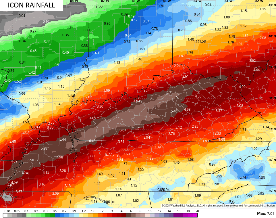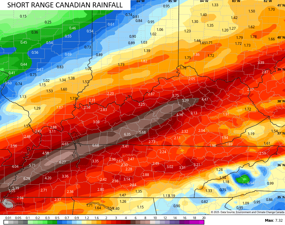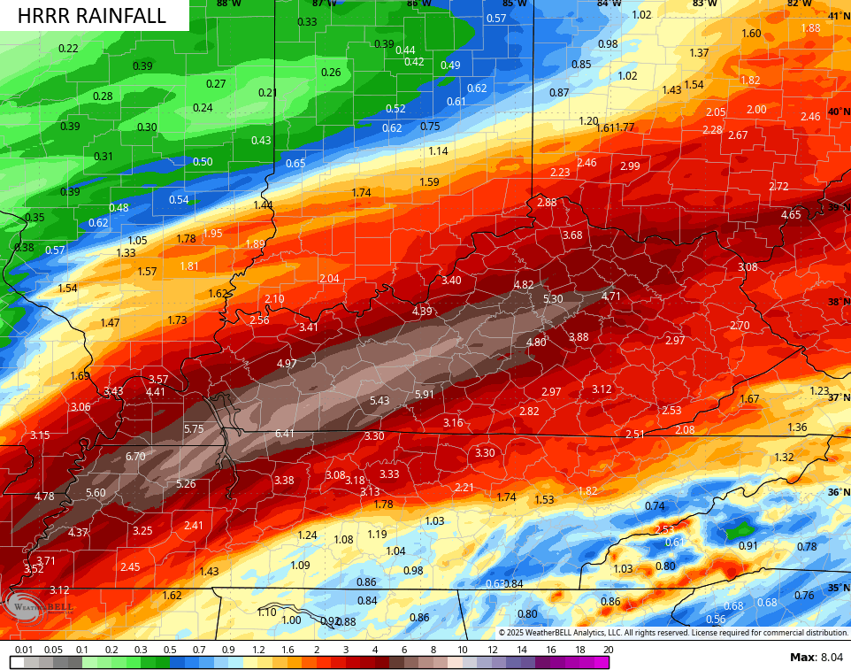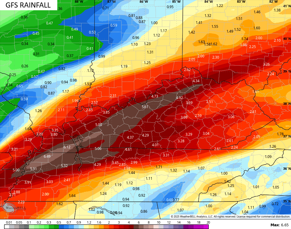 Waves of heavy rain producing showers and storms will feed from southwest to northeast across Kentucky today and Tonight as low pressure rolls into the region. Several inches of rain will be likely with the potential of a corridor of 6″+ rains showing up.
