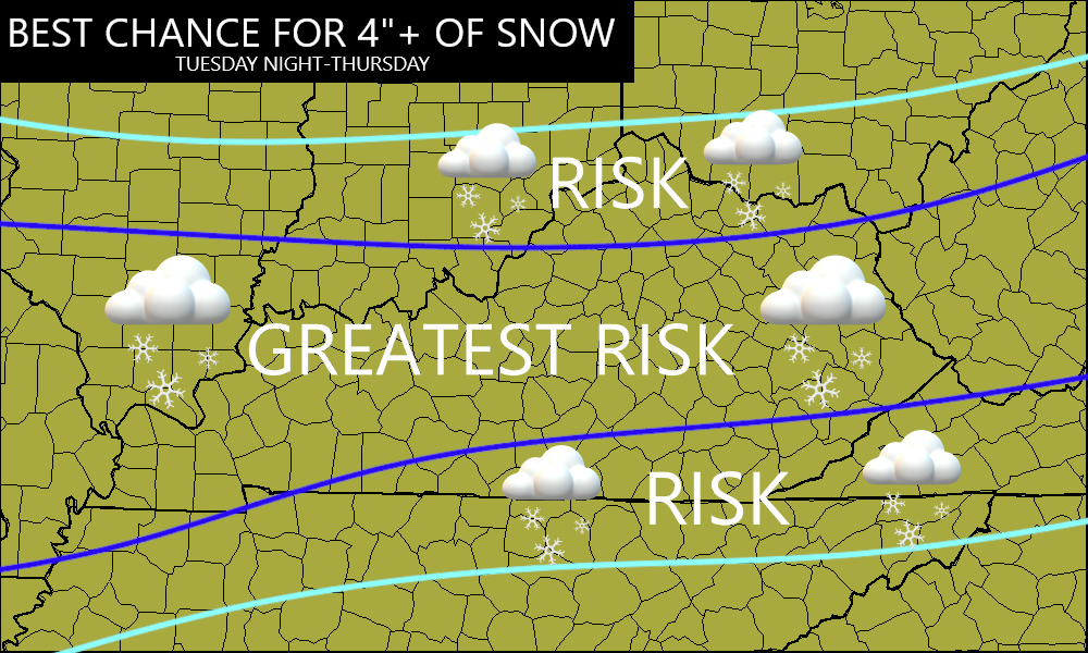 My overall thoughts have not changed with much of Kentucky likely receiving 4″ or more of snow…