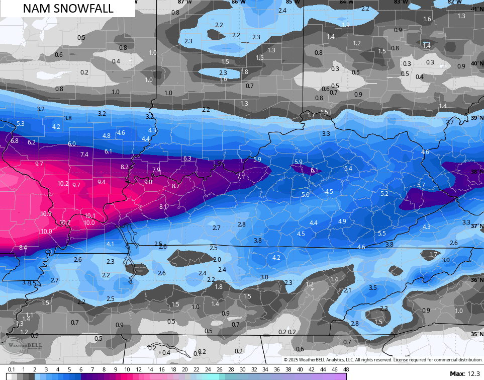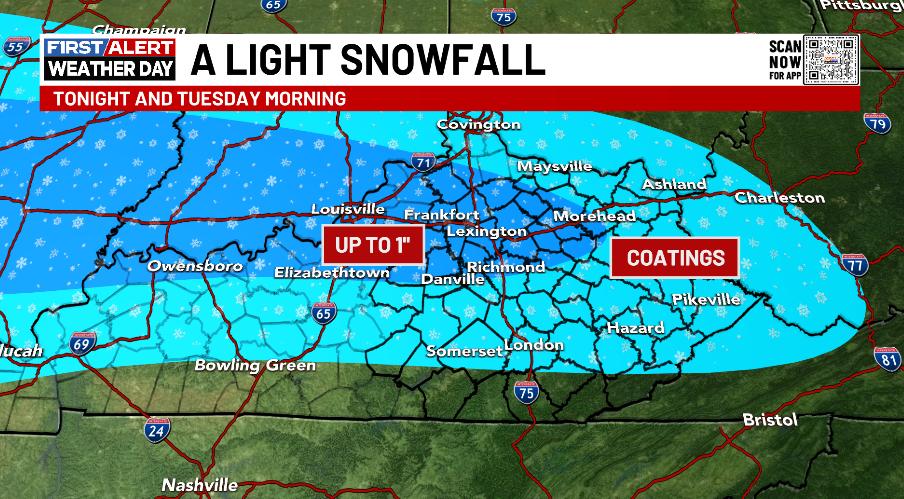 The main part of the winter storm moves in Tuesday evening in the west then spreads across the rest of the state Tuesday night into Wednesday. As that tapers Wednesday afternoon, another round of light snow engulfs central and eastern Kentucky Wednesday night into early Thursday.