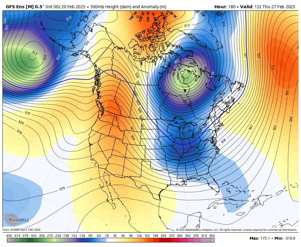 Temps should hit 50 for a few days early next week before this pattern turns active before the week if over. That action comes as we go back to a big ridge up into Alaska, helping push a deep trough into the eastern half of the country to start March…
