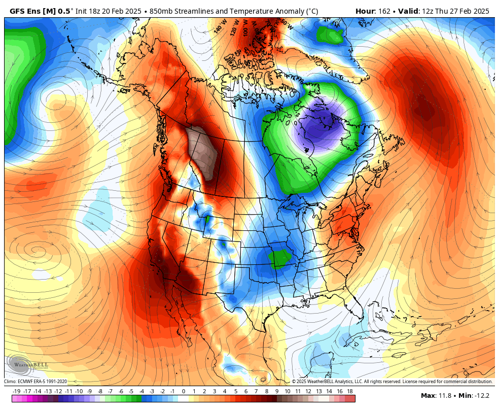 This much colder than normal setup for early March continues to show up very well on all the ensembles. A look at the GFS Ensembles have a rather ugly look…