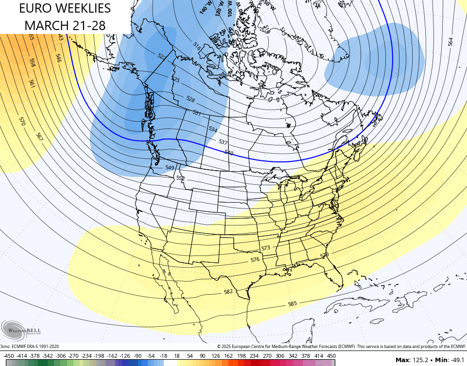The pattern after that looks more conducive for bigger systems of rain and snow late in week one of March.