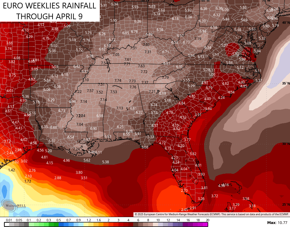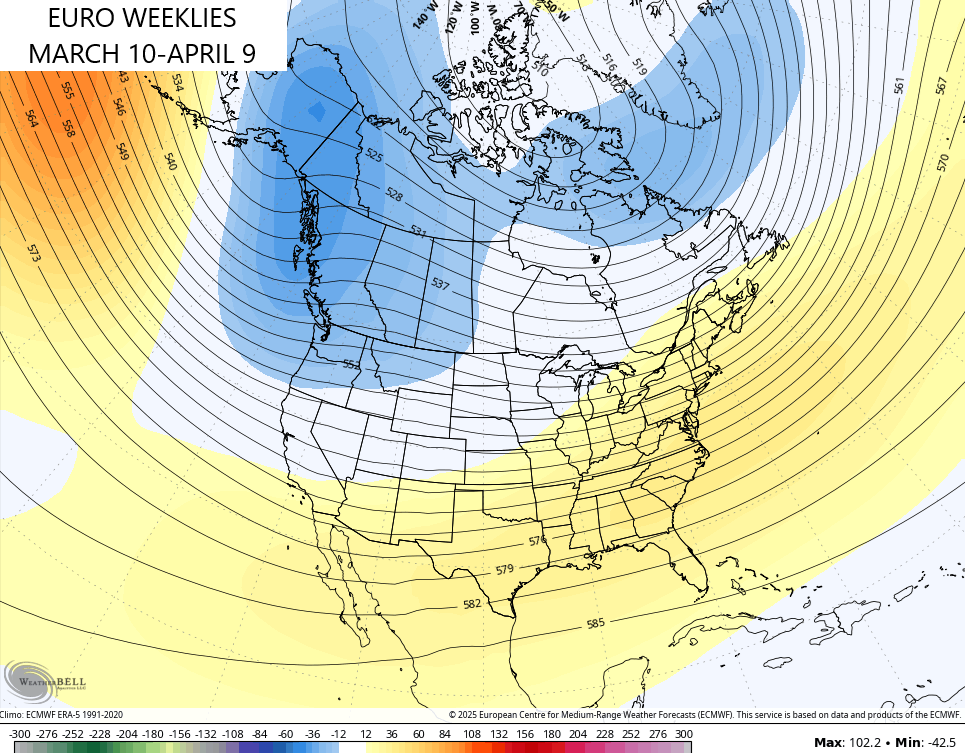 It’s also a pattern that turns progressively stormy and wet from the middle of March into early April. Much of the rainfall showing up on the EURO Weeklies happens after the next 10 days or so…