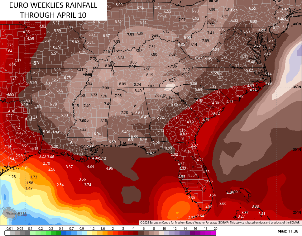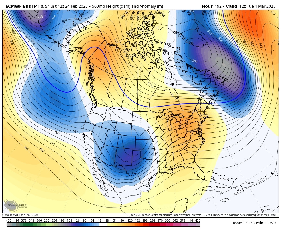 The EURO Weeklies have most of this rain showing up during the second half of the month and into the start of April…