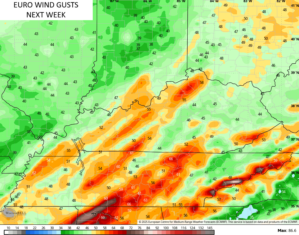The EURO is seeing this potential with the wind gust forecast from way out…