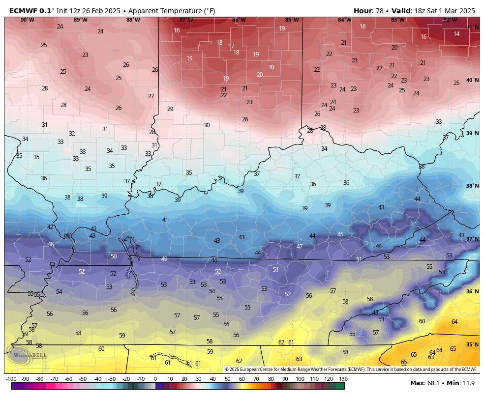 Another cold front sweeps in here from the northwest on Saturday with falling temps and gusty winds. The temps behind this are pretty darn cold for Saturday night and Sunday. Check out those wind chills from Saturday evening into Sunday morning…![]()