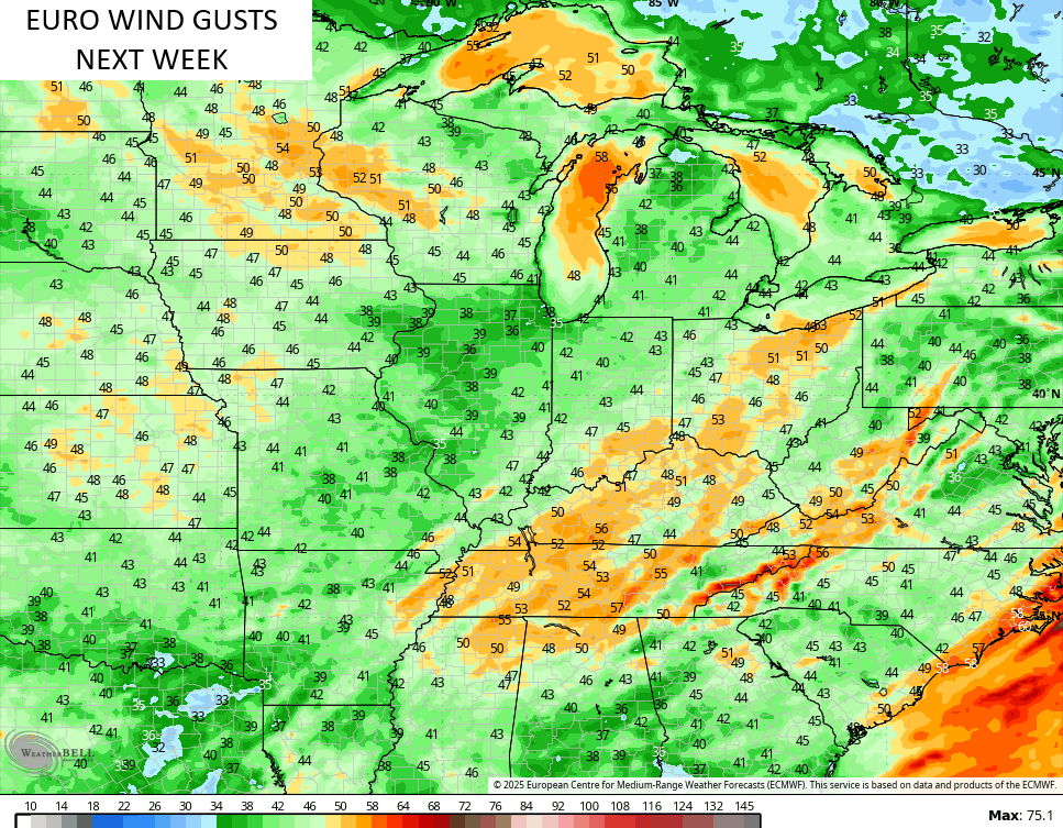 Wind gusts from this aren’t as stout as earlier runs, but are still up there…