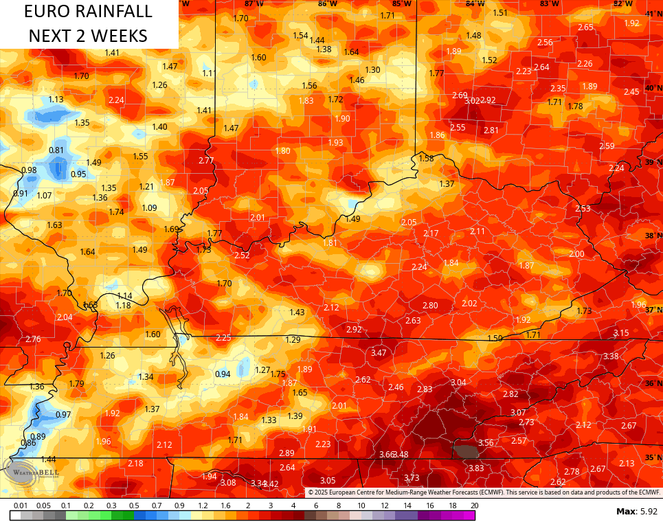 The same run of the EURO also backed off a bit on rainfall totals…