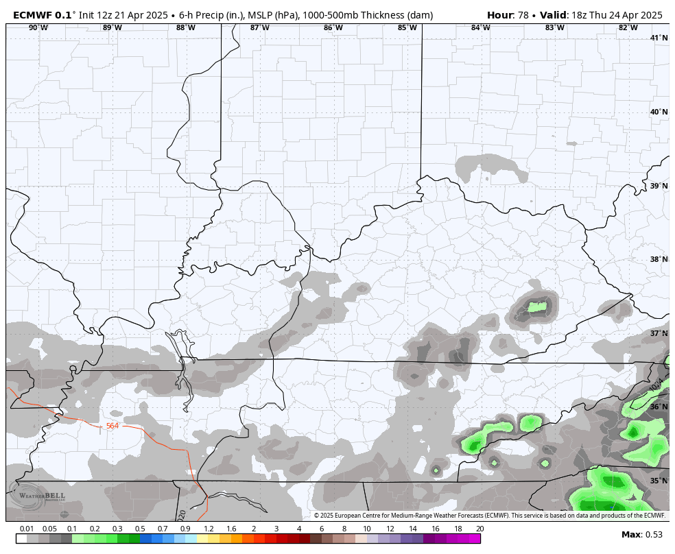 After a bit of a break on Sunday, rounds of showers and storms look to return to start Kentucky Derby week. The timing of it all will work itself out in the next few days, so all we are looking at is the trend for the big week into Derby Weekend.