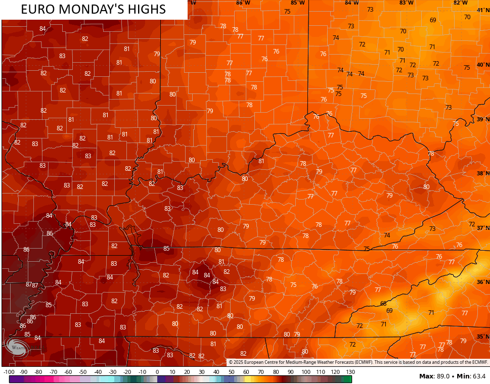 Winds turn around quickly on Monday as a southwesterly flow boosts temps into the upper 70s to middle 80s…