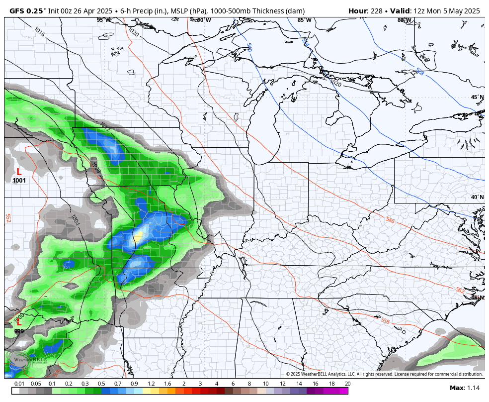 This front gets in and slows down on top of us with more showers and storms for Wednesday. Low pressure then develops to our southwest and rolls in here later Thursday into Kentucky Oaks Friday. That setup can bring another round of big boomers with the potential for heavy amounts of rain.