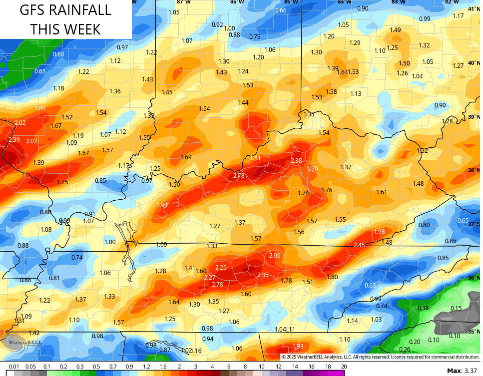 The models will struggle with the rainfall forecasts with this setup, so keep that in mind. A general 1″-3″ of rain with locally higher amounts are a good bet through Friday night…