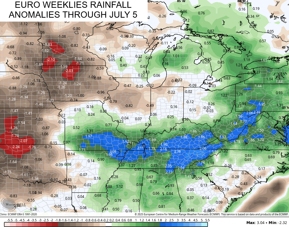 The same time period on the Weeklies keep showing wetter than normal weather…