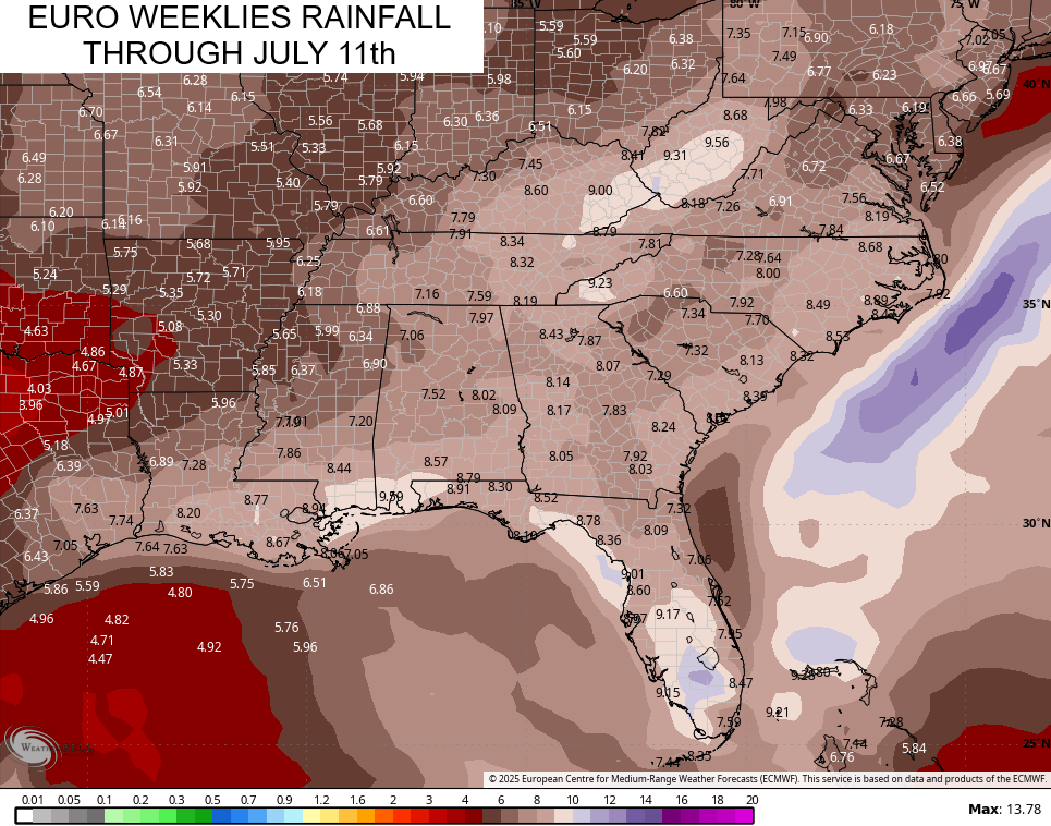 Notice the highest rain totals showing up across the eastern half of Kentucky through July 11th…
