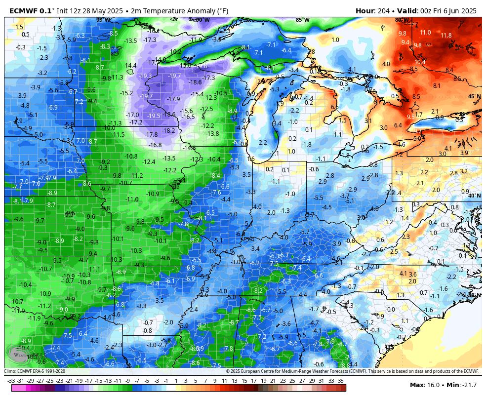 While temps should be in the 80s into the middle of next week, the EURO is knocking the temps right back down to below normal late week into the following week…