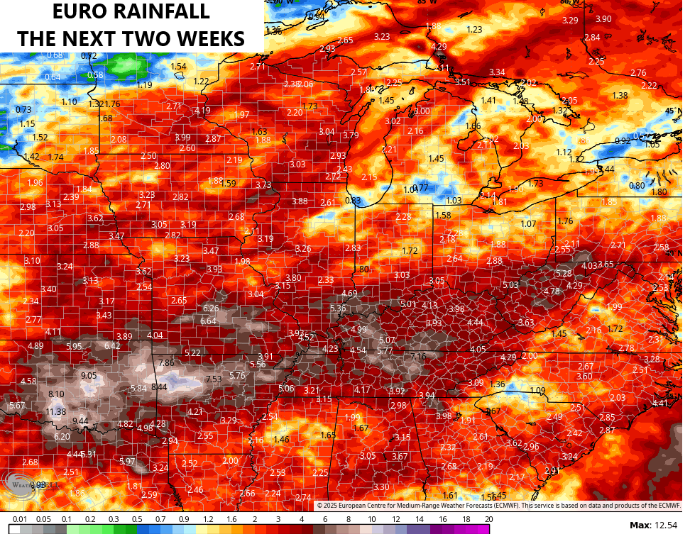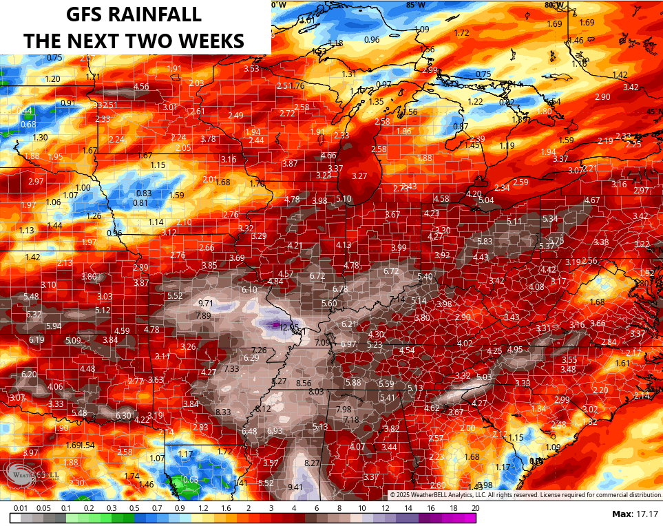 Check out the corridor of heavy rain setting up from the Plains States through the Lower Ohio Valley over the next few weeks…