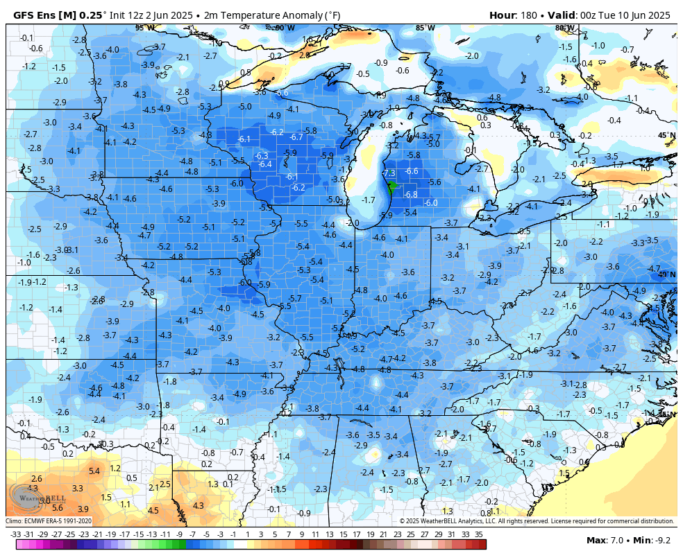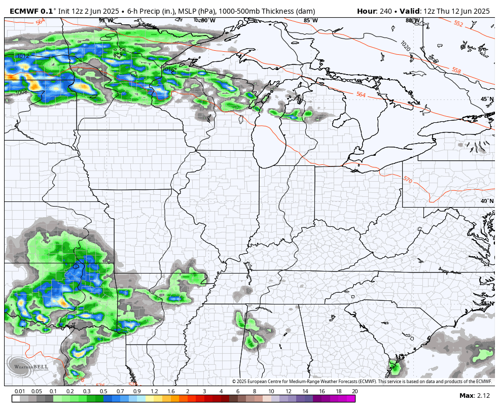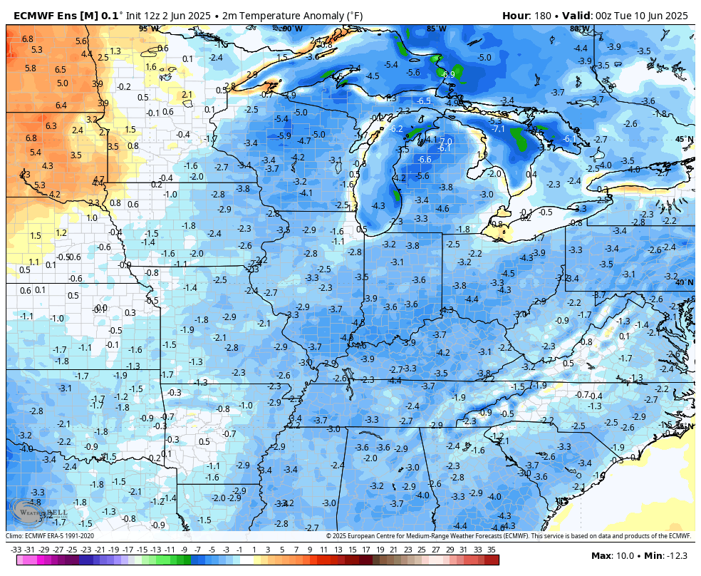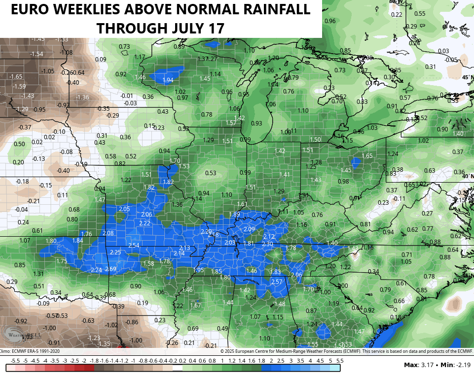 Regardless of temps, the one constant of the year is above normal rainfall. The latest EURO Weeklies continue to put our region in the bullseye of above normal rains all the way through the middle of July…