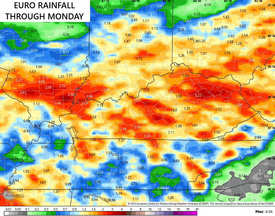 Locally higher amounts will show up from thunderstorms, leading to those local high water issues.