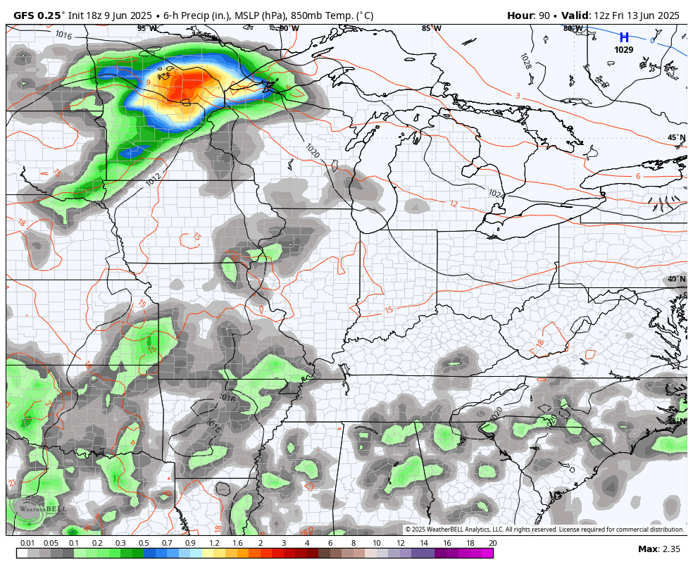 Temps slowly warm closer to normal from west to east by Thursday as we get set for more in the way of showers and storms to roll through. That starts Friday and looks to take us through next week…