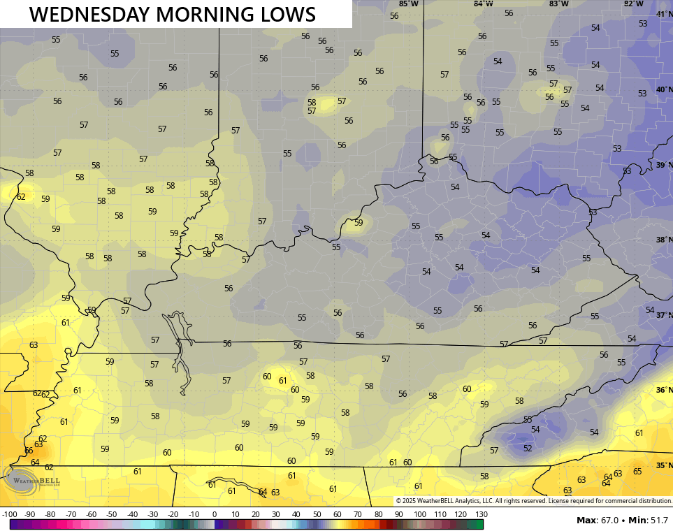 Some more of that will be noted on Wednesday as temps are deep into the 50s to start the day…