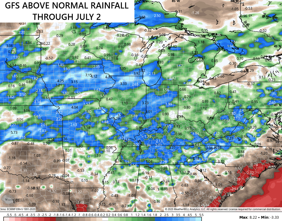 Showers and storms look to kick back in next week, keeping the next two weeks averaging above normal for rainfall…