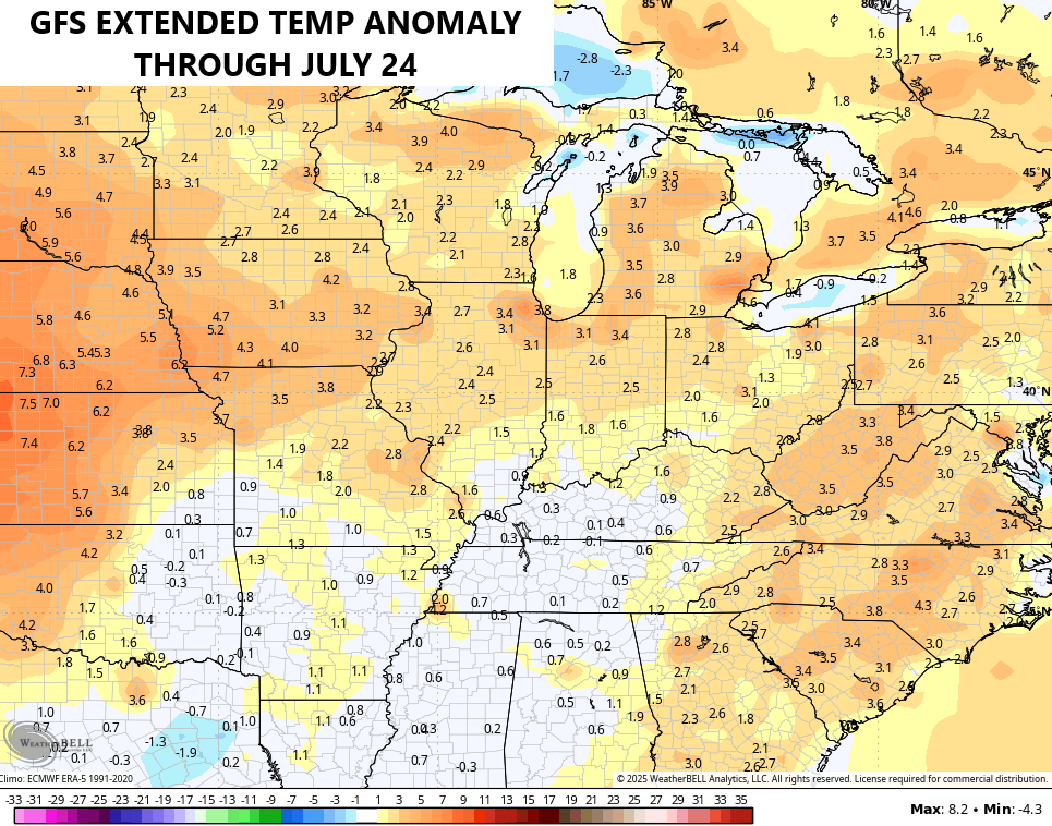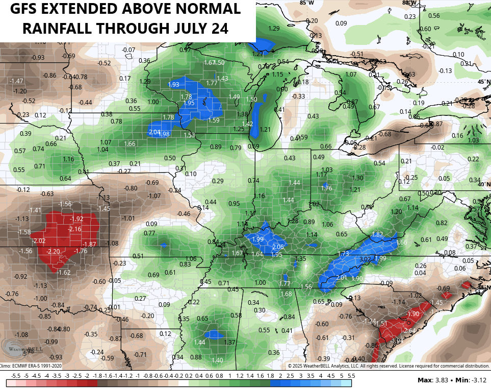Looking farther down the road, the GFS Extended keeps us with above normal rains through much of July…