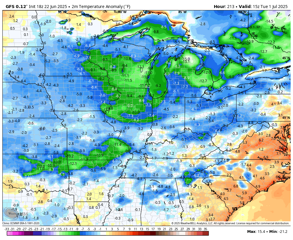 That should knock our temps down to comfy levels in the days leading up to the 4th. Actual temps may be below normal for a few days…