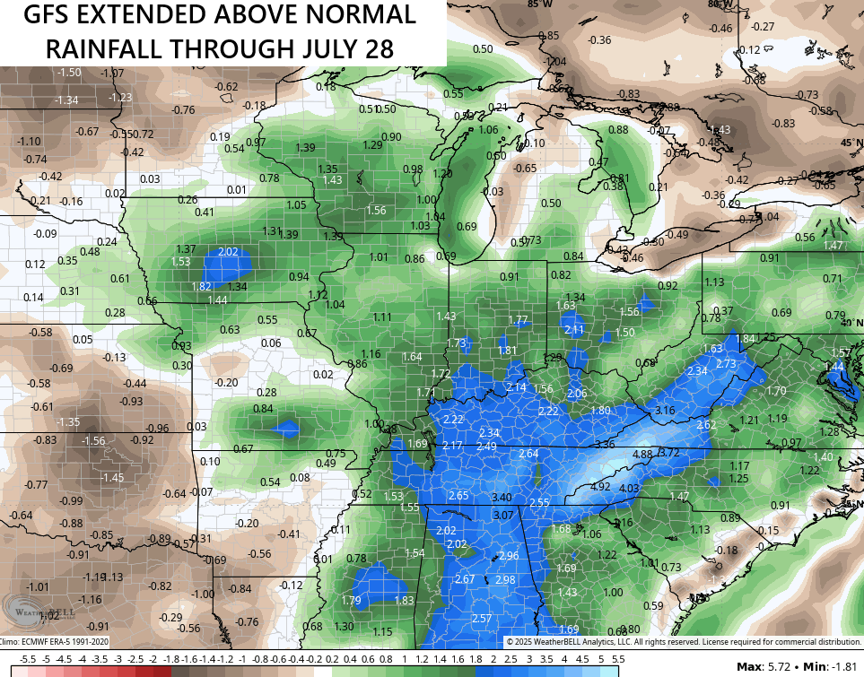 This is something the GFS Extended is seeing for much of July as it continues to show above normal rains around here…