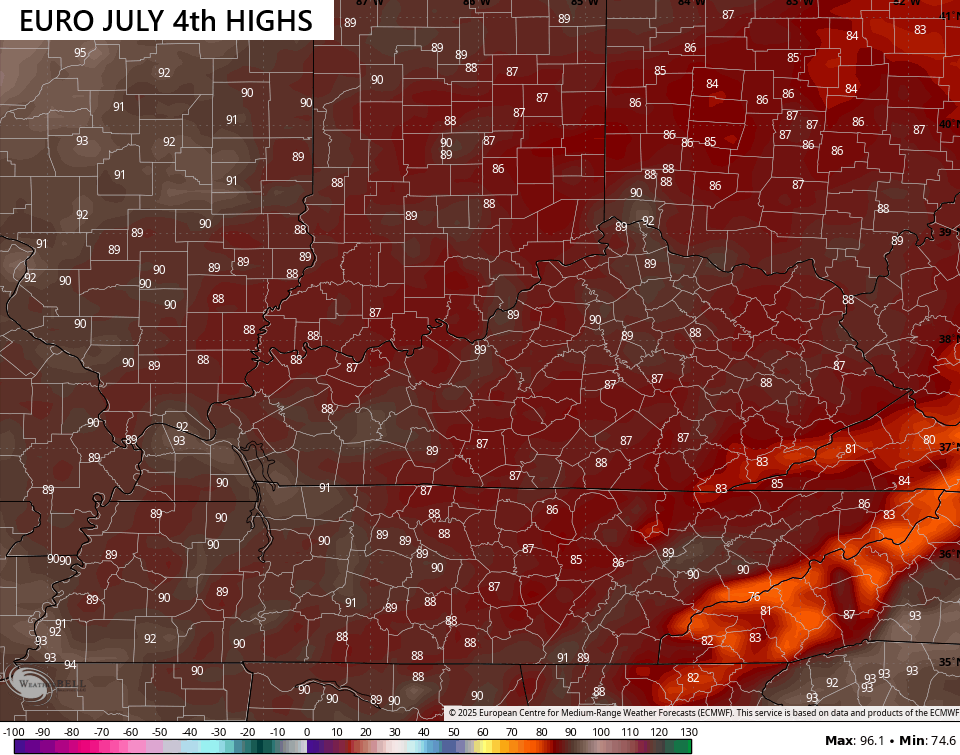 Normal highs are 85-90 for early July and we generally keep that as the normal through the middle of August. Normal is exactly how things are shaping up for the 4th…