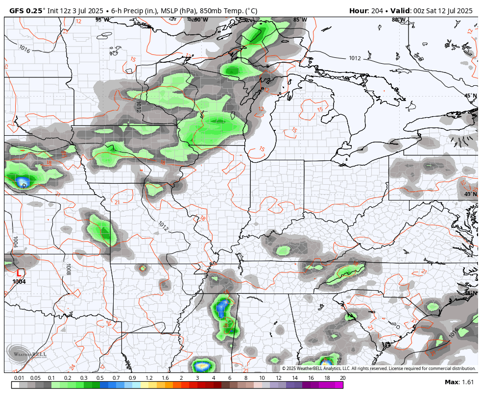Our Independence Day continues to look really good with highs 85-90 in most areas with a spot or two above. Humidity levels are still in good shape with a mix of sun and clouds.