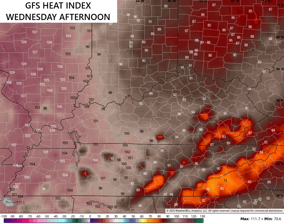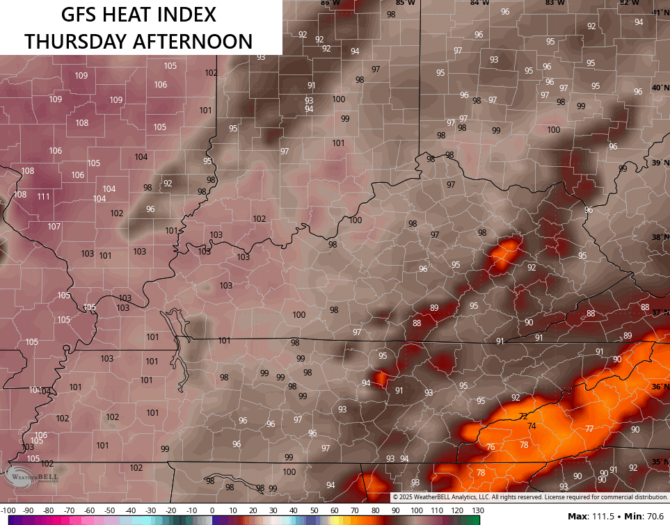 Nothing changes out west for Thursday with areas of central and eastern Kentucky with a heat index in the mid and upper 90s…