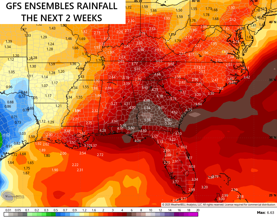 With the tropics coming to life, the models are really hinting at a lot of rain across the southeastern US over the next few weeks…