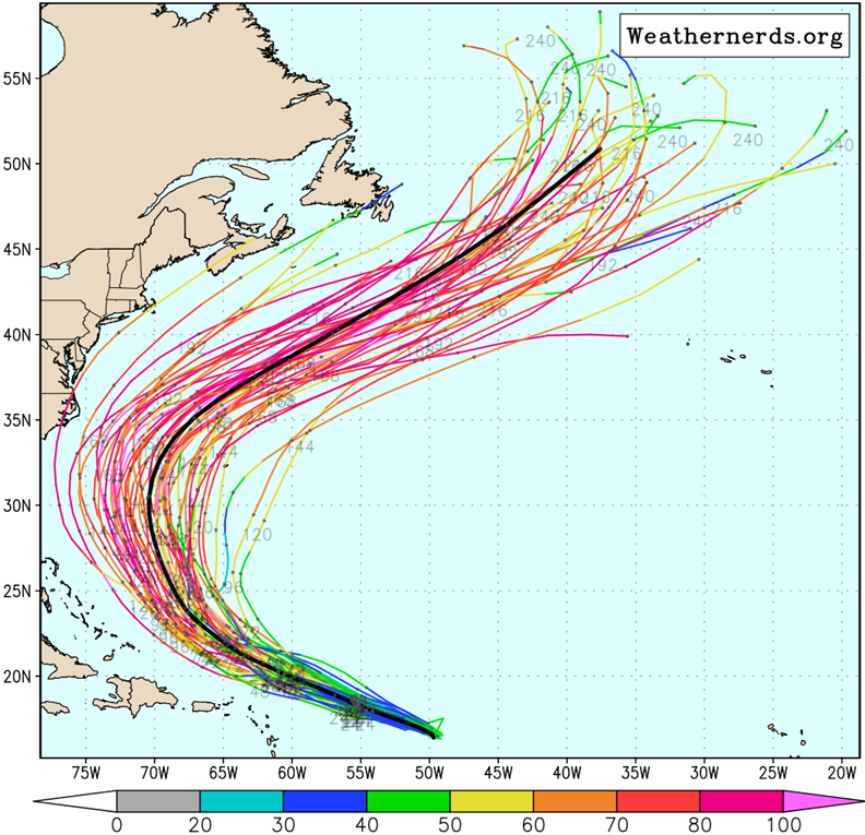 The latest from the National Hurricane Center takes this to a Major Hurricane later this weekend as it slowly starts to turn toward the north…