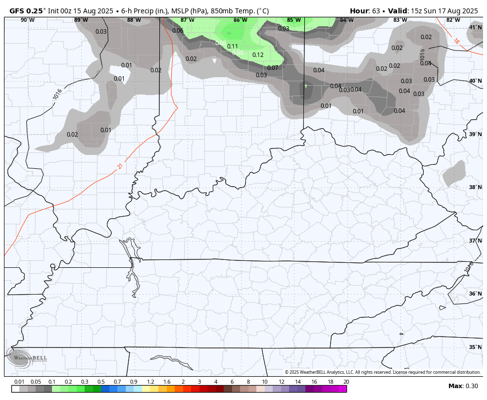 There is the chance for a sneaky thunderstorm cluster or two to drop into central and eastern Kentucky late Sunday into Sunday night…