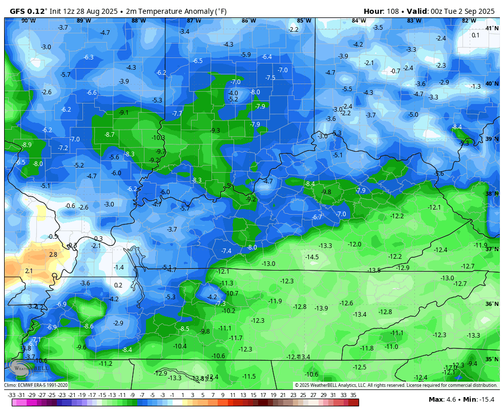 This type of a setup may very well bring even chillier air than what we just had, especially for daytime highs. A few days later next week may struggle to get out of the 60s and that’s just a few days into September.