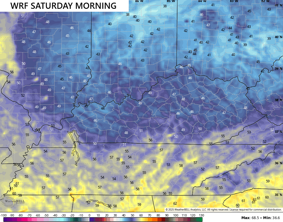 Temps come way down again behind the boundary with some 40s showing up by Saturday morning. The WRF has been money with the record cold this week…