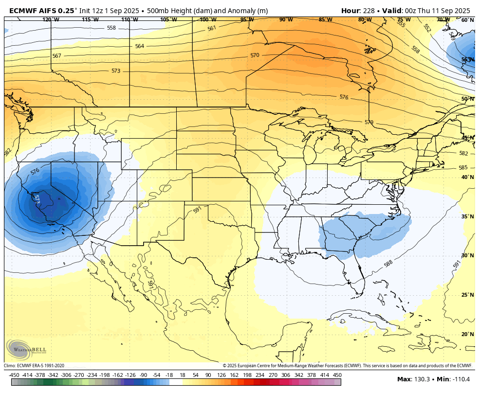 The look of the longer range has the EURO AI showing a bowling ball of a trough sweeping east across the country and slowing down near us toward the middle of the month…