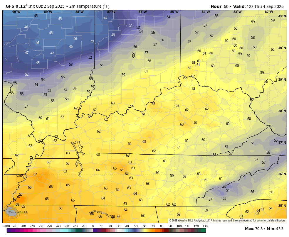 That first front on Thursday may keep some areas from getting to 70 degrees for a high. This temp animation starts at 8am and goes through 11pm…