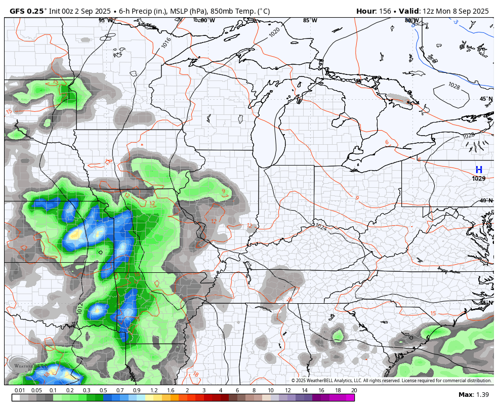 Locally heavy rains may show up in pockets with a few spots getting 1″ or more.