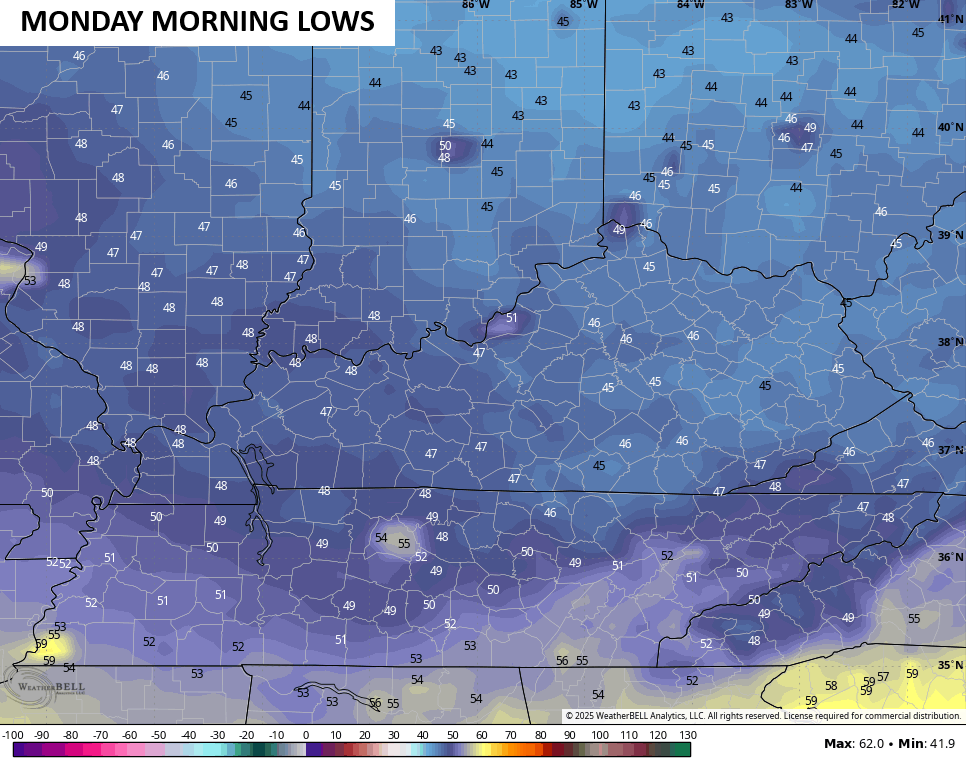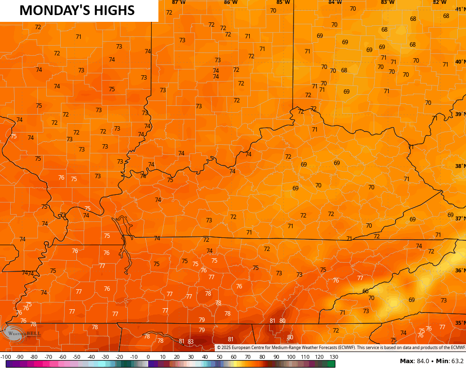 This all means a big temp swing across the state with many areas of central and eastern Kentucky 65-70 with the west 70-75.