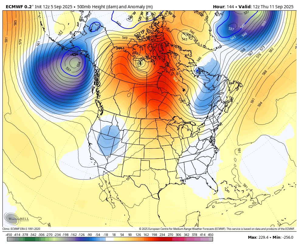 The pattern looks dry for much of next week as the overall setup across North America looks rather blocky. The latest from the EURO at 500mb shows this well and shows how we may see another deep trough digging into the country by the middle of the month…