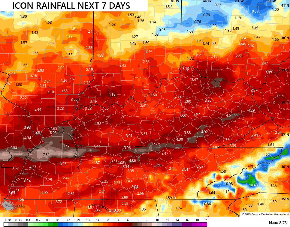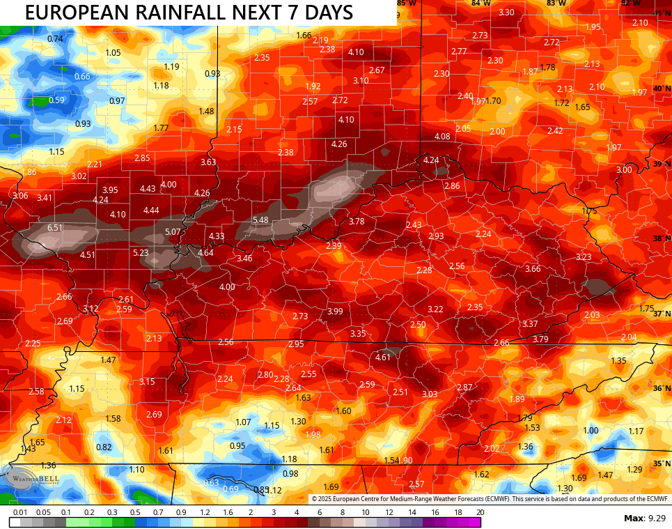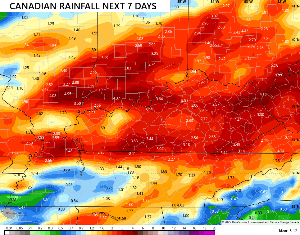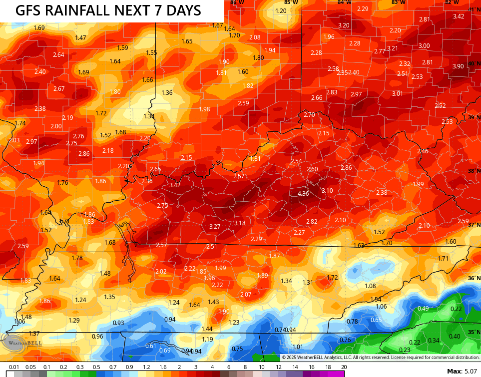 Again, I think this is a general 1″-3″ of rain that falls across Kentucky through Friday with some areas going above and beyond. Areas that do that will have to be on guard for local high water issues.