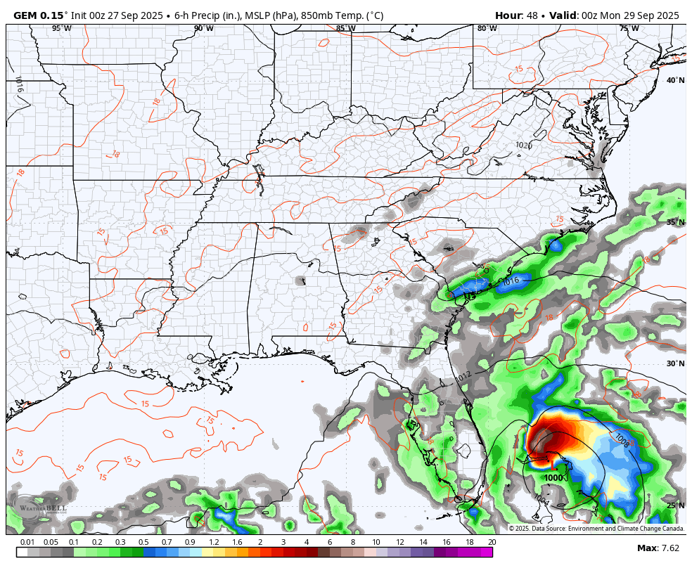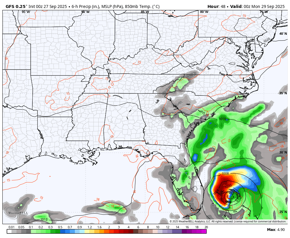 The latest GFS was showing something similar to that, but it now gives us a stall and turn out to sea solution…